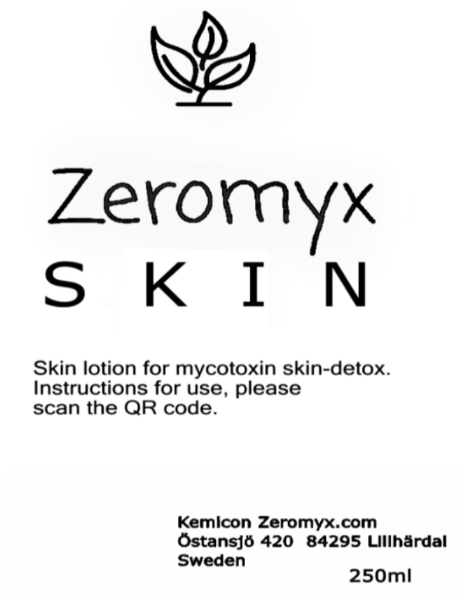 Zeromyx SKIN is a lotion that can help remove mycotoxins from your skin. It can help when you detox from mycotoxins. Remove clothes and shoes, please also cut hair very short or shave your head, apply lotion everywhere on your body. Then you put on new clothes and shoes. Instructions for use here